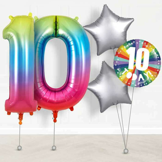 Age 10 10th Birthday Rainbow Bunch of Balloons (Trio)