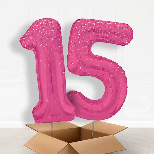 Hot Pink Dots 15th Birthday Balloon in a Box