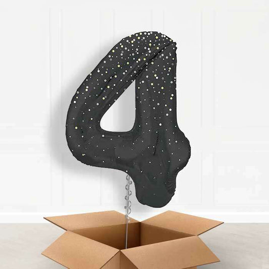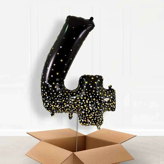 Big Gold Number 4 Balloon Inflated Number in a Box
