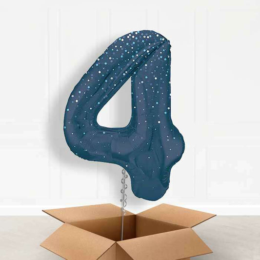 Big Blue Number 4 Balloon Inflated Number in a Box