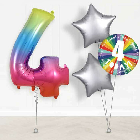Age 4 4th Birthday Rainbow Bunch of Balloons (Trio)