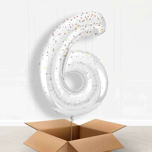 Silver Giant Number 6 Balloon in a Box Gift