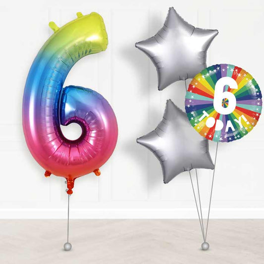 Age 6 6th Birthday Rainbow Balloon Package