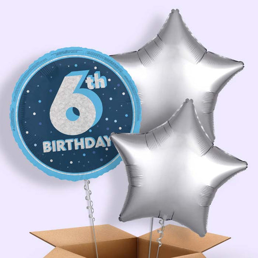Happy 6th Birthday Blue Stars Balloon in a Box