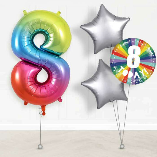 8th Birthday Rainbow Bunch of Balloons Inflated with Helium (Trio)