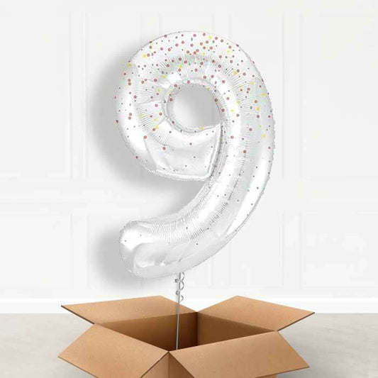 Silver Giant Number 9 Balloon in a Box Gift