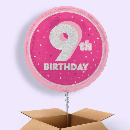 Happy 9th Birthday Pink Hearts Balloon in a Box