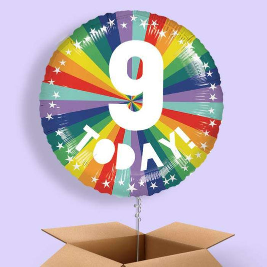 Age 9 9th Birthday Rainbow Foil Balloon in a Box