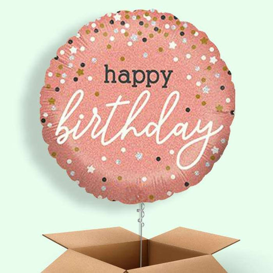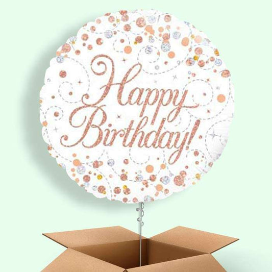 Rose Gold Holographic Happy Birthday Balloon in a Box