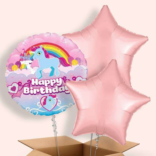 Rainbow Unicorn Happy Birthday Balloon Bunch (Trio)
