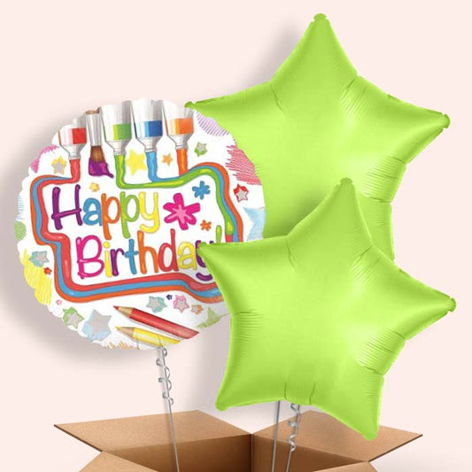Happy Birthday Art Balloons in a Bunch Inflated with Helium (Trio)