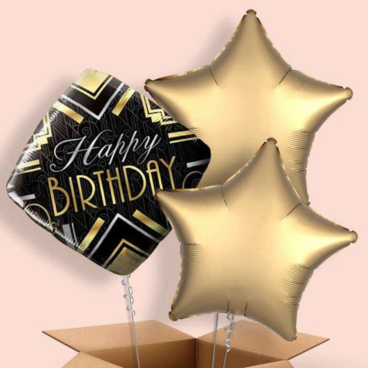 Happy Birthday Art Deco Balloons in a Bunch (Trio)
