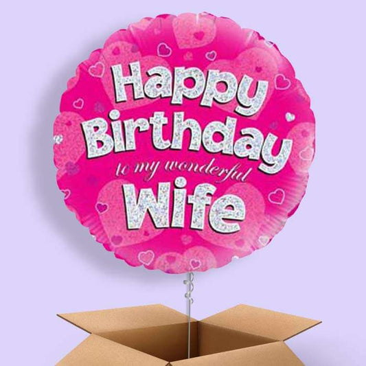 Happy Birthday Wife Balloons in a Bunch Inflated with Helium (Trio)