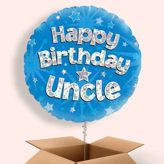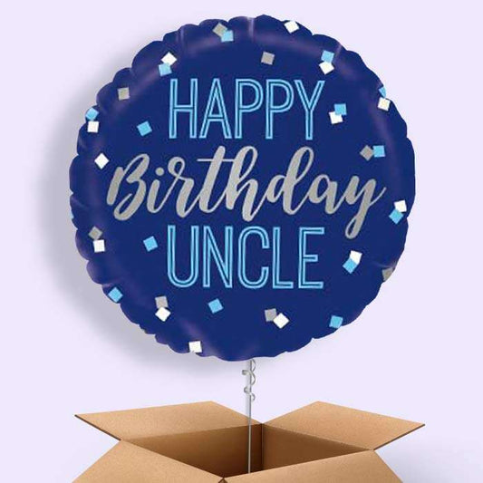 Happy Birthday Uncle Balloon in a Box - Blue Star
