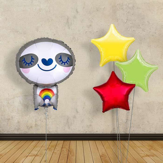 Sloth with Rainbow Balloon Bouquet Delivery