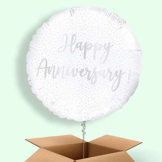 Silver Confetti Happy Anniversary Balloons in a Box