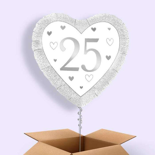 Silver Happy 25th Anniversary Heart Foil Balloon in a Box