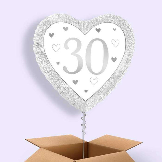 Silver Happy 30th Anniversary Heart Foil Balloon in a Box