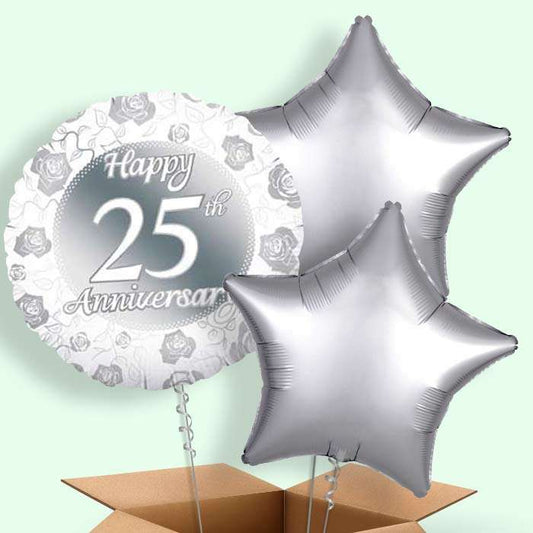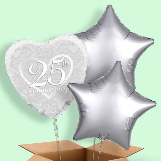 25th Wedding Anniversary Balloons in a Box (Silver)