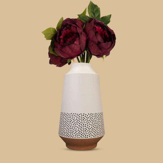 Artificial Burgundy Peonies in a Off-White Nordic Vase