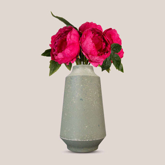 Artificial Fuchsia Pink Peonies in Green Skandi Vase