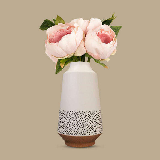 Artificial Ivory Peonies Bouquet in a Off-White Nordic Vase