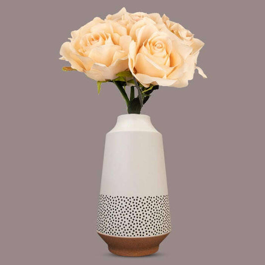 Artificial Nude Roses Bouquet in a Off-White Nordic Vase