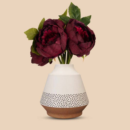 Artificial Burgundy Peonies in a Off-White Nordic Vase