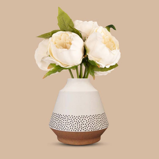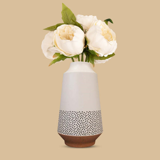 Artificial Ivory Peonies Bouquet in a Off-White Nordic Vase