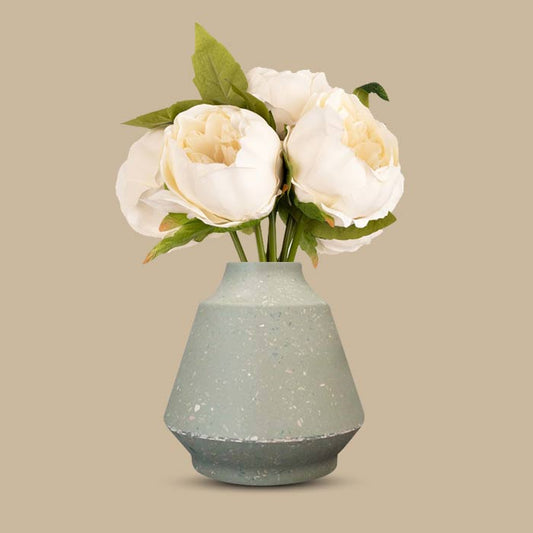Artificial Ivory Peonies Bouquet in a Skandi Green Vase