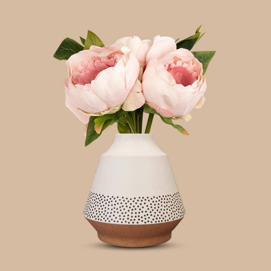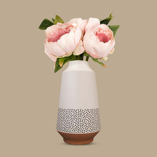 Artificial Light Pink Peonies in a Off-White Nordic Vase