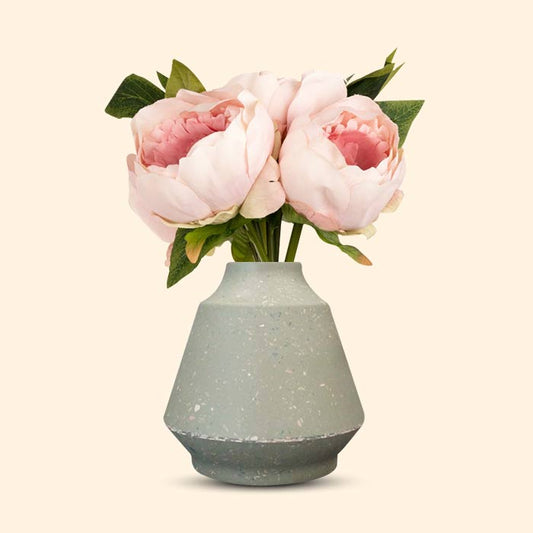 Artificial Light Pink Peonies in a Skandi Green Vase