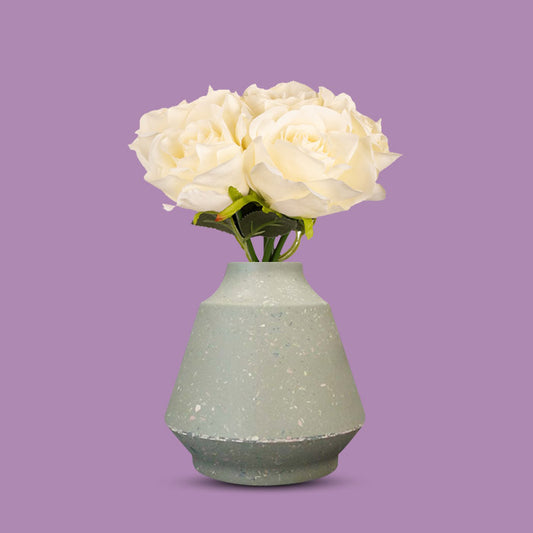Artificial Cream Roses Bouquet in a Skandi Green Vase