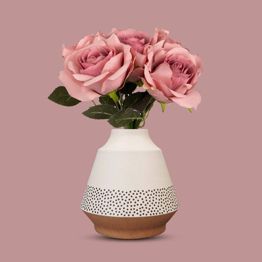 Artificial Dusty Pink Roses in a Off-White Nordic Vase