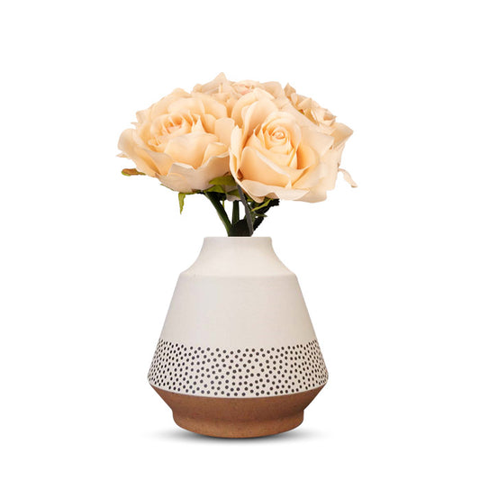Artificial Champagne Roses in a Off-White Nordic Vase