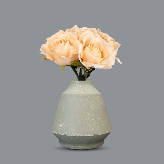 Artificial Champagne Roses Bouquet in a Green Skandi Vase