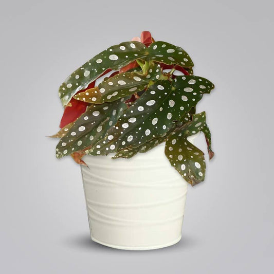 Begonia Maculata Indoor Plant with a White Metal Pot (13cm)