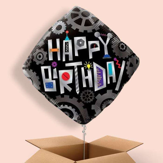 Happy Birthday Robot Cogwheels Balloon in a Box