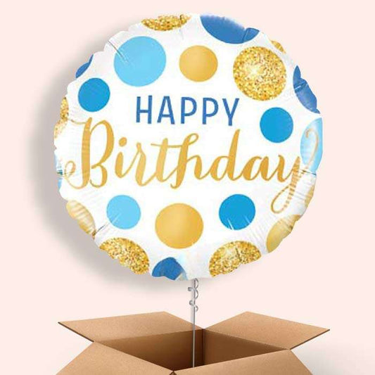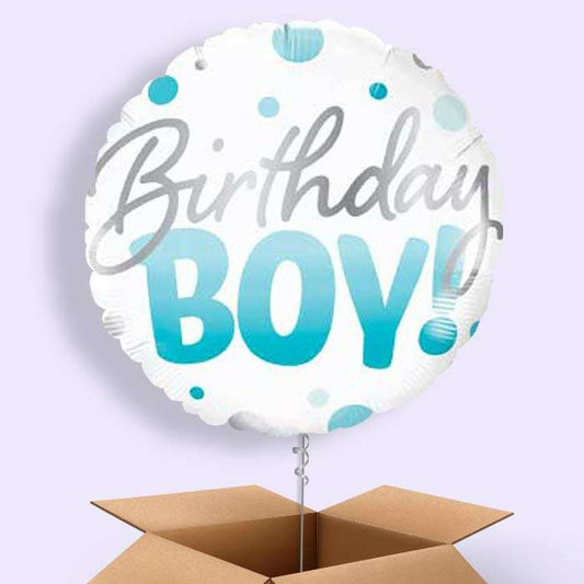 Blue Dot Birthday Boy Balloons in a BoxBoy Balloons in a Box