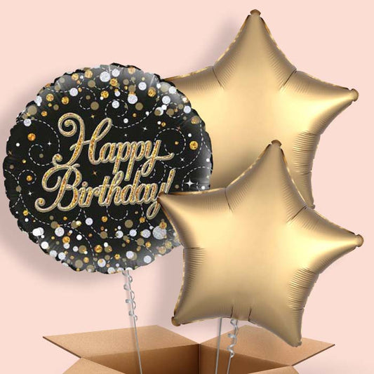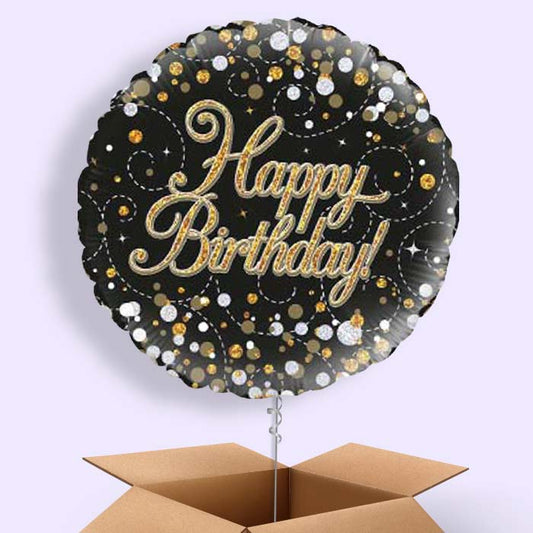 Navy and Gold Happy Birthday Foil Balloon in a Box