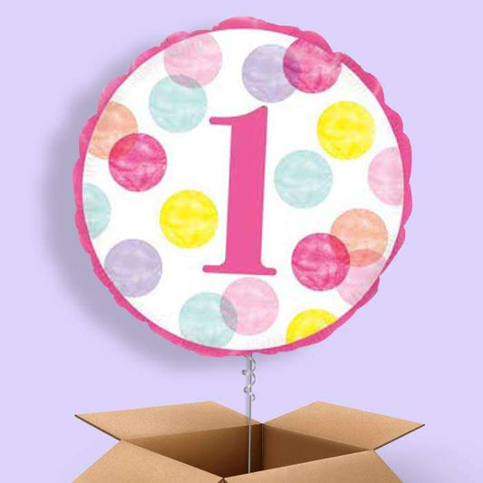 Pastel Dots 1st Birthday Helium Balloons Delivered