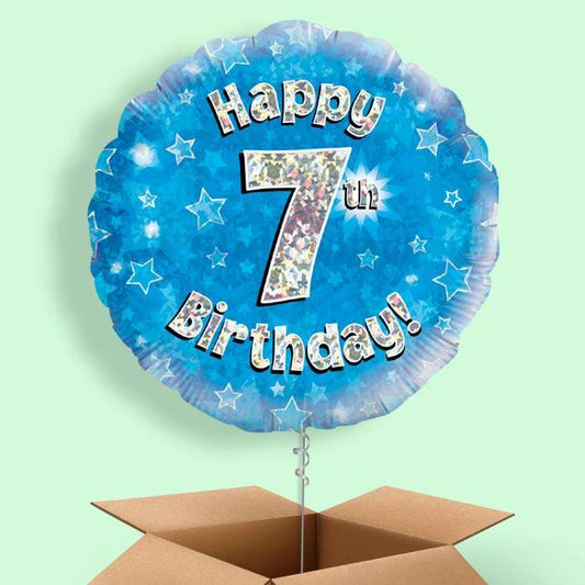 Happy 7th Birthday Blue Stars Balloon in a Box