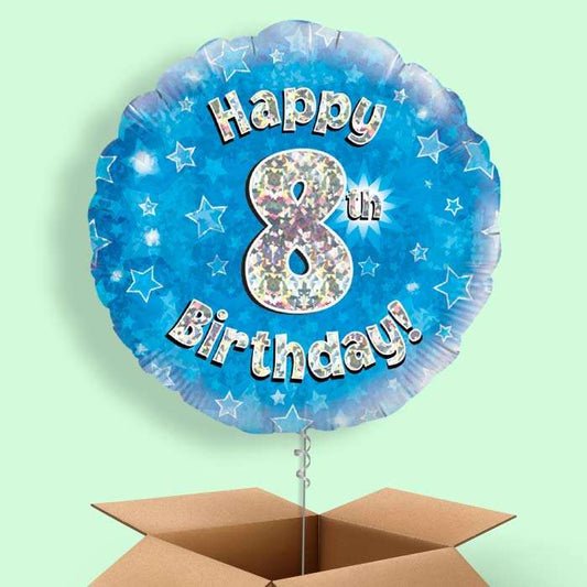 Happy 8th Birthday Blue Stars Balloon in a Box
