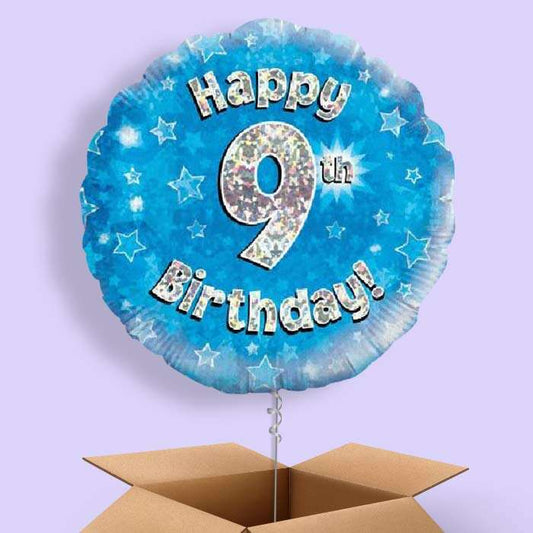 Happy 9th Birthday Blue Stars Balloon in a Box