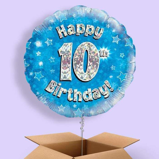 Happy 10th Birthday Blue Stars Balloon in a Box