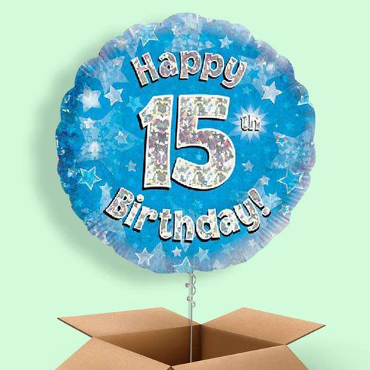 Happy 15th Birthday Blue Stars Balloon in a Box