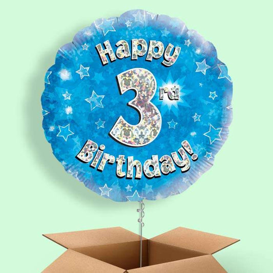 Happy 3rd Birthday Blue Stars Balloon in a Box