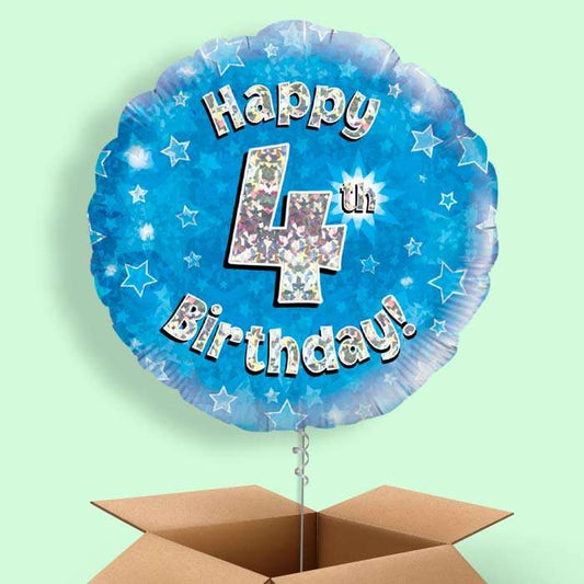 Happy 4th Birthday Blue Stars Balloon in a Box