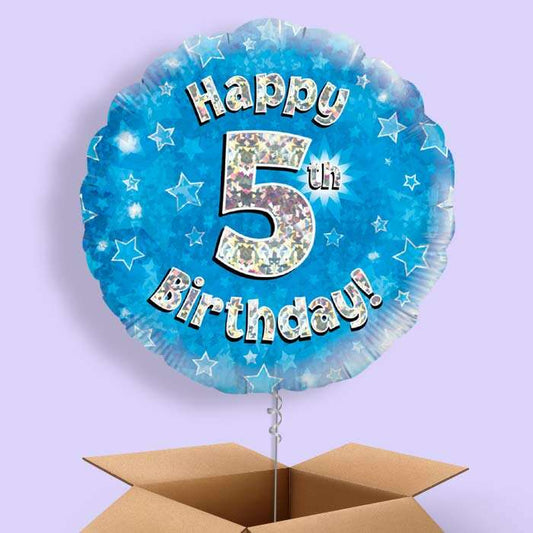 Happy 5th Birthday Blue Stars Balloon in a Box