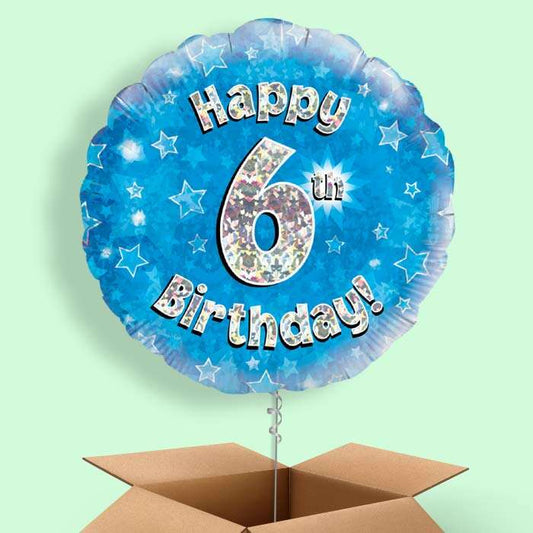 Happy 6th Birthday Blue Stars Balloon in a Box